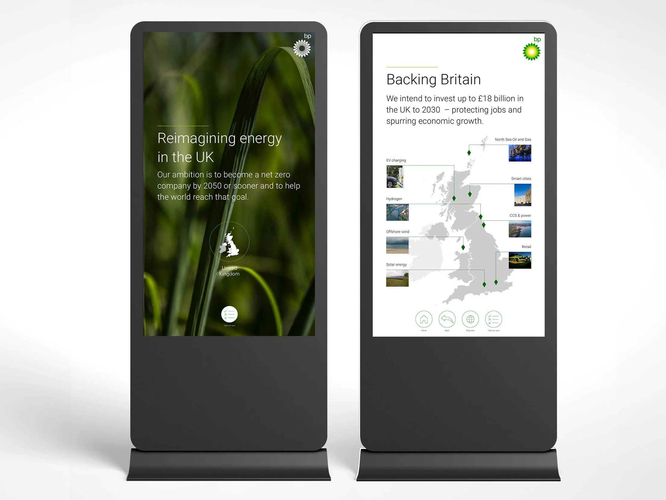 BP wanted to make its net zero goals tangible and personal for every employee worldwide. Not as a PDF buried in an inbox, but as something you could walk up to, touch, explore, and be inspired by — whether you were in the London HQ, an offshore rig, or a refinery in Texas.