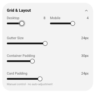 Advanced Mode: A surgical-tier control set for senior designers and engineers. This allows for deep-level adjustments to Z-index layers, golden-ratio spacing, and complex motion easing.